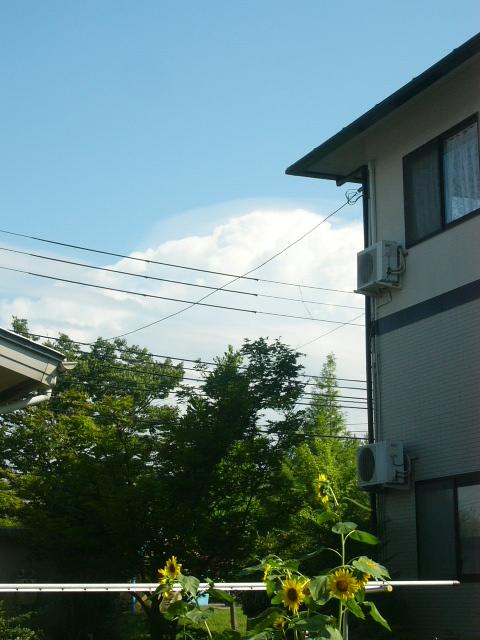 うちの庭から空とひまわりをがんばってうつしました。 ひまわりと家は人ん家なんだけどね・・・・。 あんましうまく撮れなかった・・・・・! これから写真とってきます